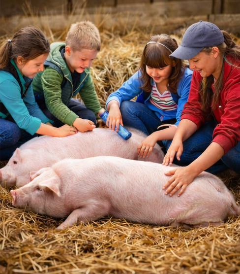 Lernort Bauernhof und Natur: Welche Tiere gibt es bei uns? Wie sehen diese aus? Wie riechen sie und wie fühlen sie sich an? Was fressen sie? Auf dem Bauernhof arbeiten die Kinder mit Nutztieren und lernen ihren Lebensraum kennen. Sie kümmern sich beispielsweise eigenständig um ein Huhn und achten auf seine Bedürfnisse und eine artgerechte Haltung.